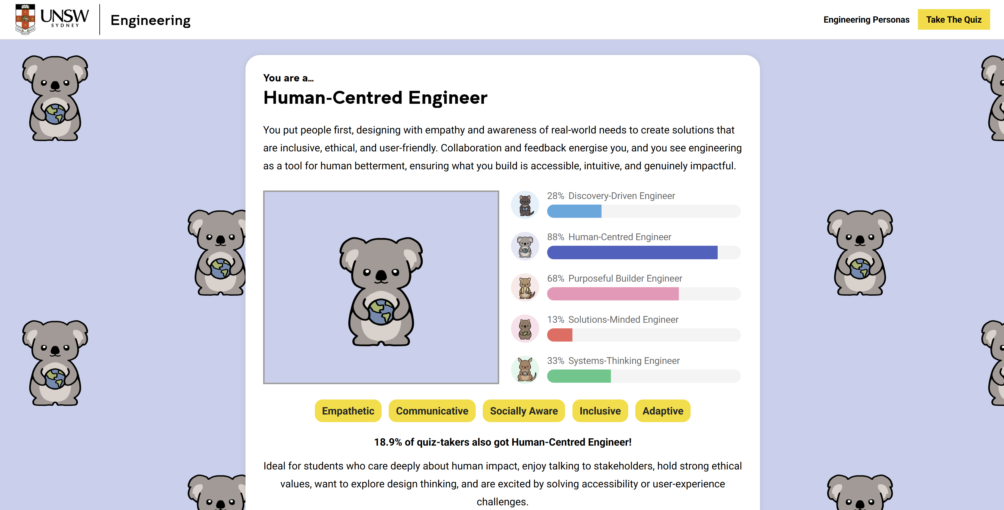 Interactive quiz for first year engineering students. Built in collbaration with UNSW Engineering in 2025.
