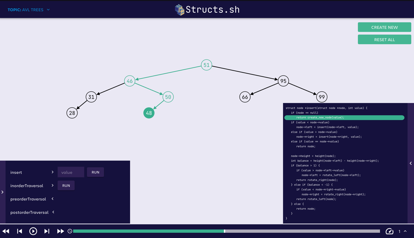An interactive data structure and algorithm visualiser and educational platform for computer science students.