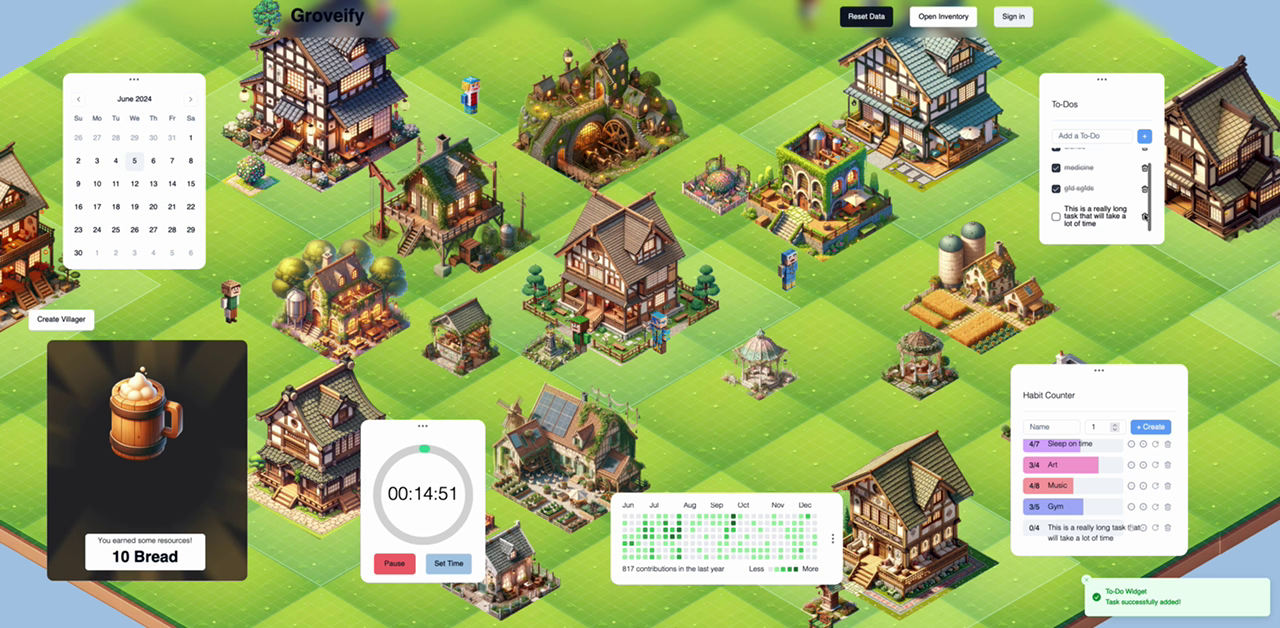 Groveify is a habit tracker and productivity manager that comes with a cute little world to keep you going!